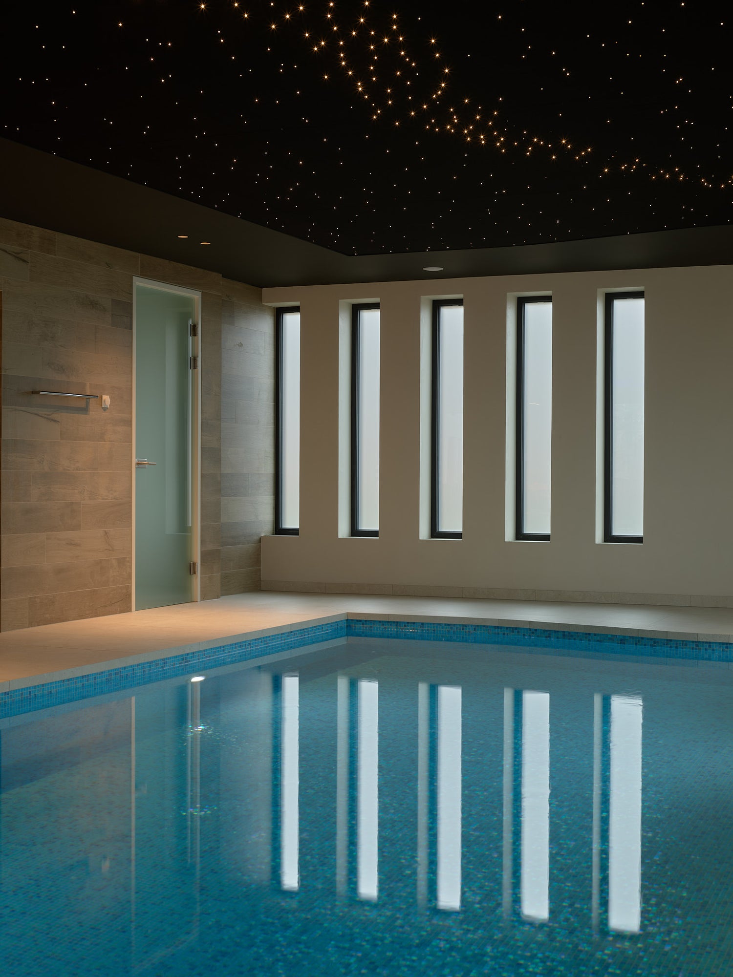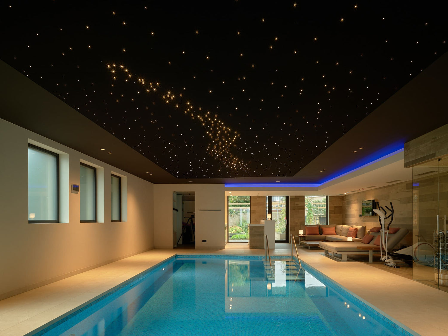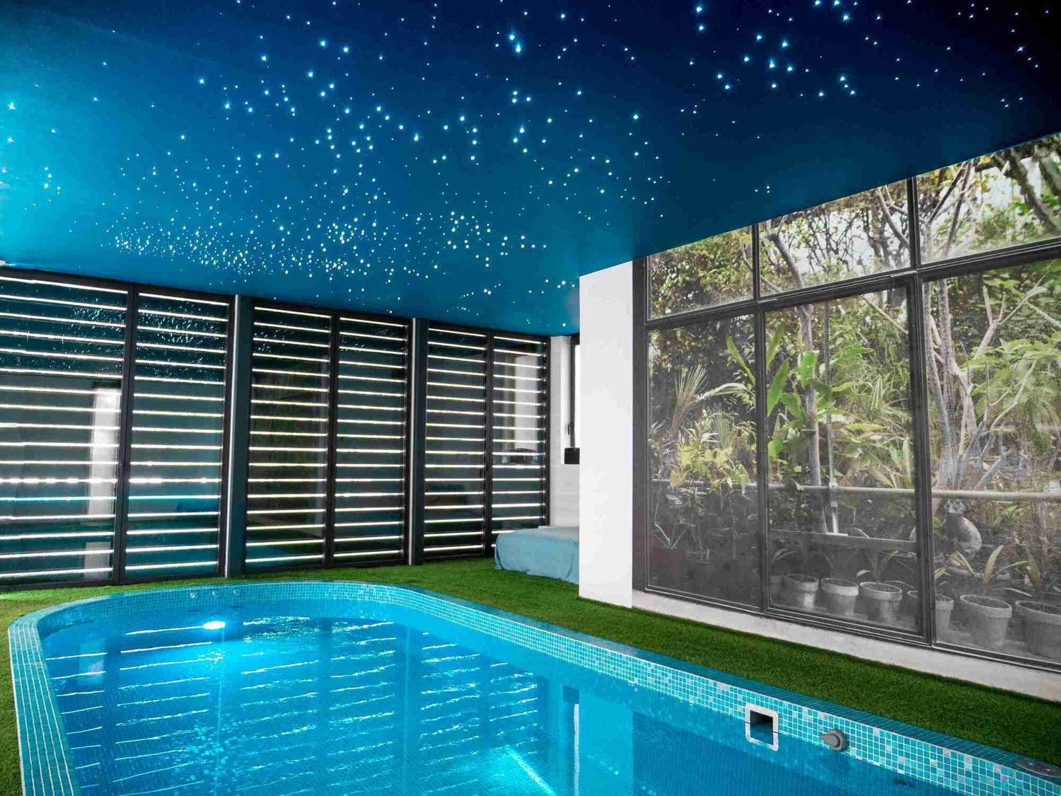 Een PIXLUM-led sterrenhemel kan ook geïnstalleerd worden in vochtige ruimtes zoals badkamers, zwembaden en sauna's